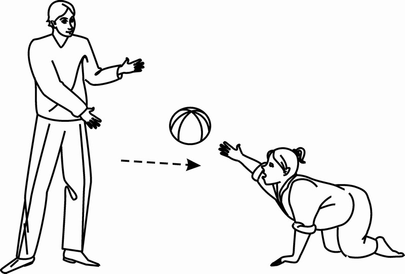Игроки образуют круг вокруг ведущего. Ведущий бросает небольшой мяч или теннисный шарик игрокам, те возвращают его обратно. Так происходит до тех пор, пока игрок не уронит мяч. Если он уронил мяч первый раз, то продолжает игру, стоя на одном колене. Затем, в случае пропуска мяча, надо встать на оба колена (см. рис.), при следующих пропусках этим игроком: на один локоть, на два локтя, лечь. Однако, если игрок и в необычном положении смог поймать мяч, то он меняет свое положение на предыдущее, например, с двух колен поднимается на одно.