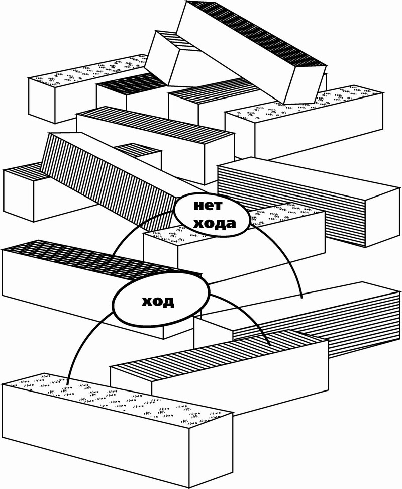 Для игры необходимо нарезать палочки квадратного сечения 10 х 10 мм длиной 4 см (см. рис.). У палочек окрашивают две противоположные стороны в разные цвета из расчета по 5 штук на каждого играющего. Палочки складывают в мешочек, перемешивают и высыпают на стол. Каждый игрок по очереди подбивает пальцем (щелчком) одну из своих палочек, стараясь сбить ею со стола одну из палочек противника. Соблюдается следующее правило: верхние стороны палочек (и которой бьют, и которую сбивают) должны быть либо окрашенными, либо неокрашенными. Если стороны палочек не совпадают, то игрок нажимает на край палочки ногтем, заставляя ее перевернуться. Такая попытка засчитывается за ход. Сбитая палочка убирается в мешочек. Если упали палочка противника и своя палочка, то их возвращают на стол, поворачивая разными сторонами. Играют до тех пор, пока не останется одна палочка. Ее владелец объявляется победителем.