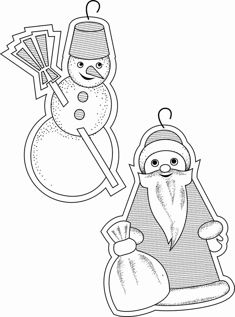 В эстафете участвуют две команды по семь человек. Два человека от команды натягивают на расстоянии 4-5 м от остальных участников ленту, в которой сделано десять дырочек. У каждого участника команды по две картинки со скрепками — Дед Мороз и Снеговик (см. рис.). Побеждает команда, быстрее собравшая гирлянду.