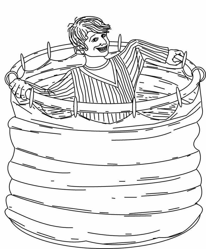 С обеих концов «трубы», сшитой из ткани, пришиваются обручи. Длина ткани не менее 1,5 м. Для каждой команды готовится 1-3 «трубы», которые раскладываются на дистанции. Первый игрок добегает до «трубы», встает в обруч, берет его и поднимает вверх так, чтобы самого игрока не было видно (см. рис.), затем опускает на землю и продолжает движение. Побеждает команда, быстрее побывавшая во всех «трубах».