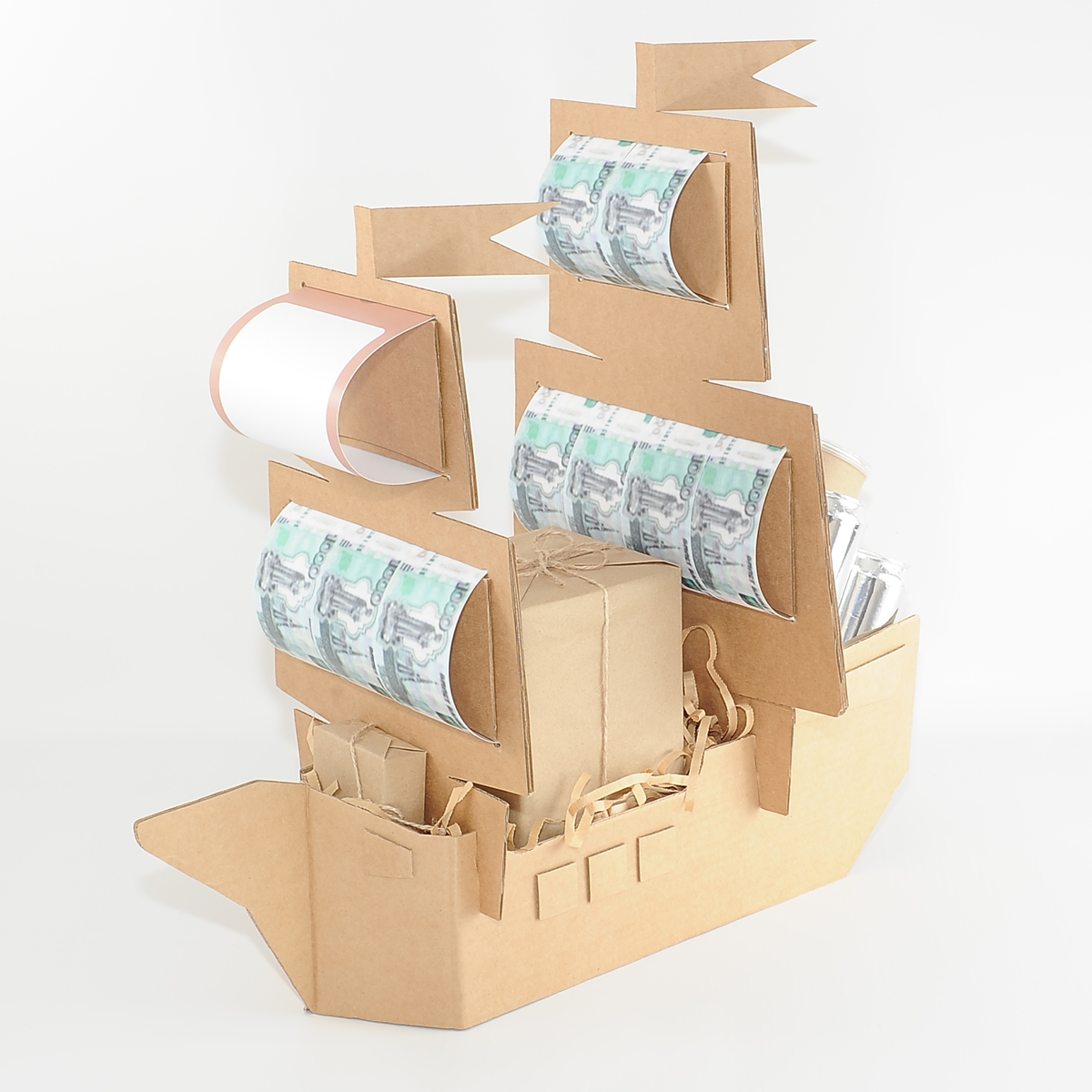 Подарочная упаковка «Корабль-парусник» + поздравления и сценки.