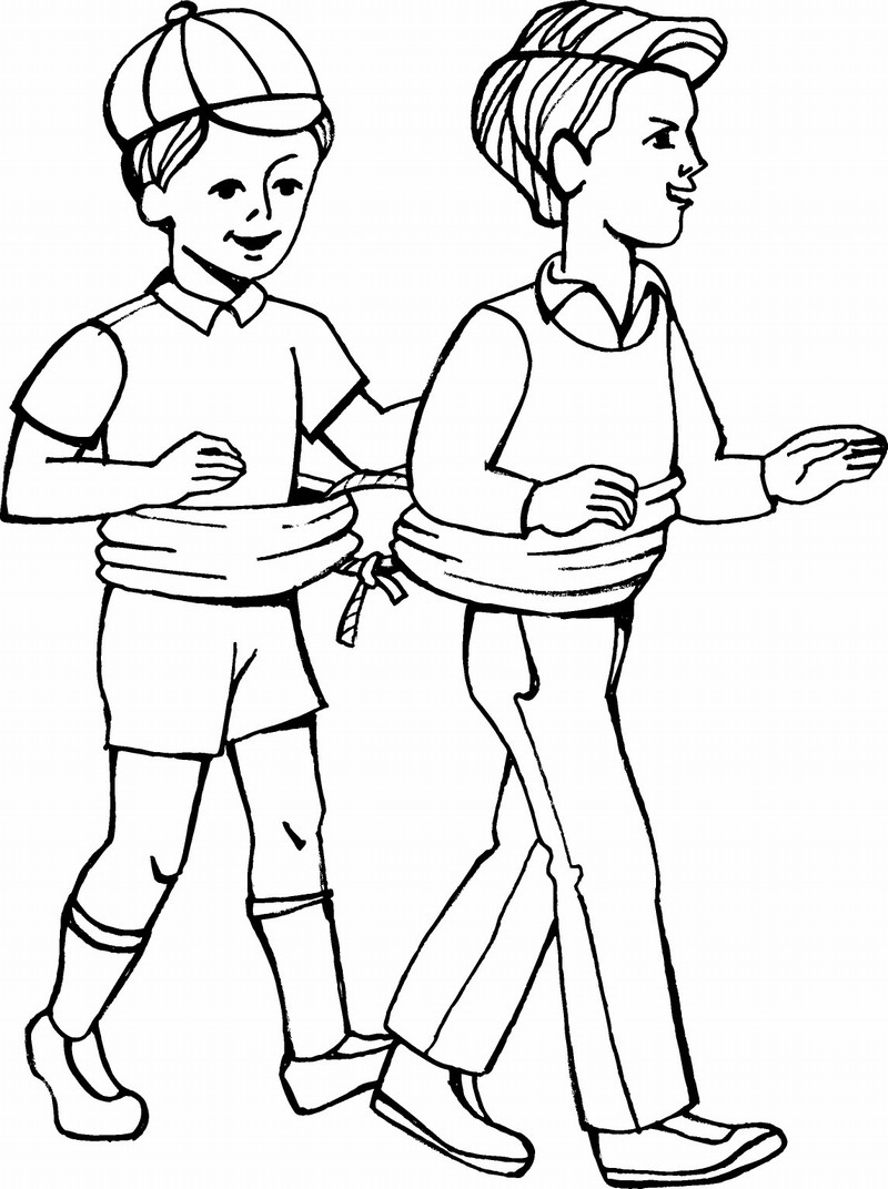 Спасательные круги Полиэтиленовые мешки без дна, каждый из которых надет на талии игрока, связывают друг с другом, как на рис. (можно связать два, три и т. д.). Игроки преодолевают дистанцию с расставленными кеглями. В обе стороны они бегут рядом или друг за другом, огибая кегли. Дутый конкурс Команда получает маленькие полиэтиленовые мешочки, которые по сигналу необходимо надуть и, завязывая, сложить в большой мешок для мусора. По второму сигналу производится их подсчет. Побеждает команда, надувшая большее количество мешочков. Черный тоннель Команды стоят напротив друг друга на расстоянии вытянутой руки. Первый игрок получает большой черный пакет для мусора, у которого разрезано дно. Он надевает его через голову и снимает через ноги. Вышагнув, игрок передает мешок соседу, который проделывает то же самое. Модники Два игрока надевают на руки полиэтиленовые мешочки, берут длинную ленту и завязывают вокруг своей талии на бант. Побеждает быстрейший. Хвост воздушного змея Игроки получают полиэтиленовые мешки и длинную (до 2 м) веревку. В течение 1 минуты они сооружают «хвост змея»: завязывают веревку на узел посередине мешков, чтобы получился «бантик», оставляя между ними небольшое расстояние. Ленточных дел мастера Игрок берет ножницы и полиэтиленовый мешок, который разрезает так, чтобы получилась длинная лента. Длина ее проверяется следующим образом: игрок становится ногами на середину ленты, поднимает руками ее концы вверх.